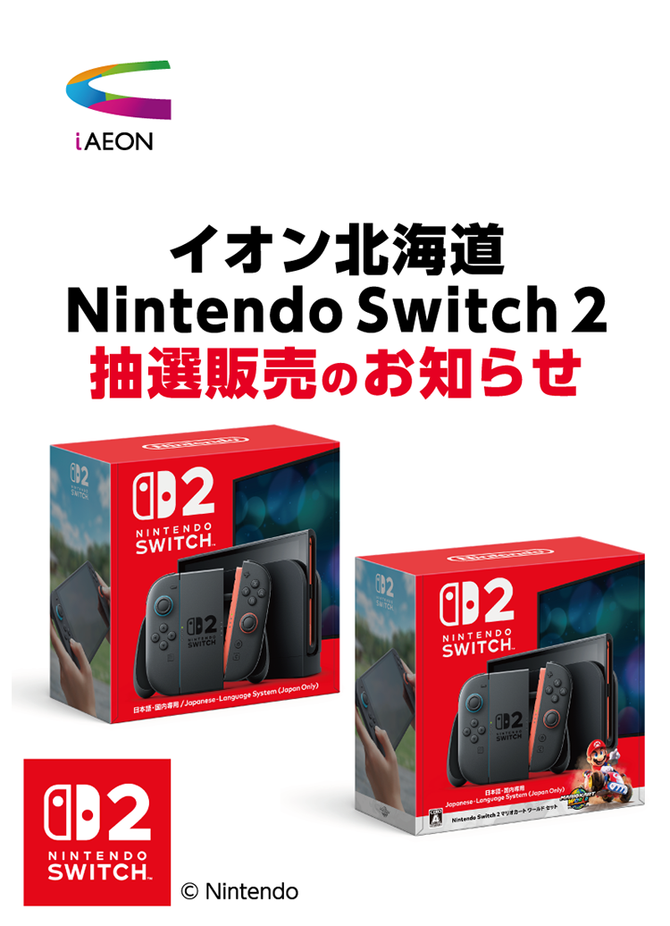 各種Nintendo Switch 2本体に加えて、イオン北海道限定セットも抽選販売の対象になるとのこと。