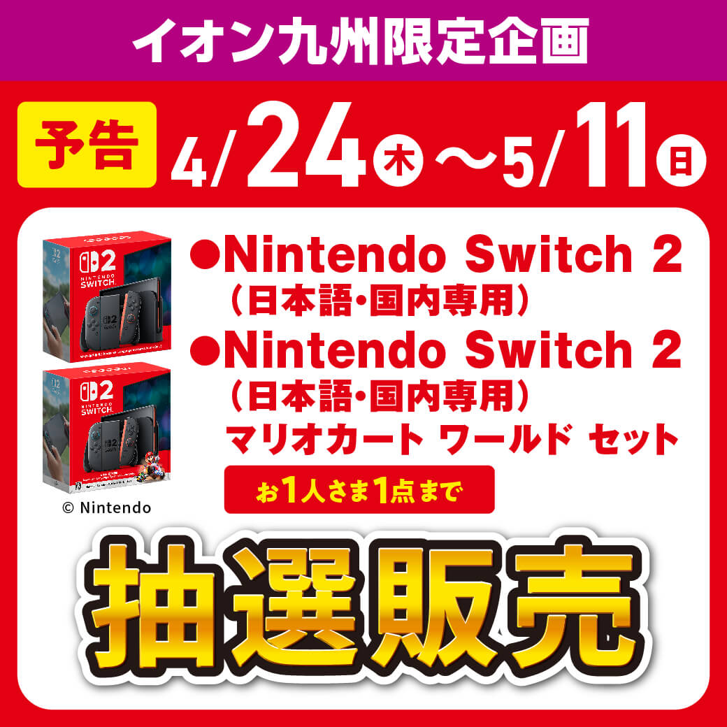 別途紹介したイオン本州・四国と同じく、イオン九州でも「Nintendo Switch 2」は抽選での販売になることが決定しました。