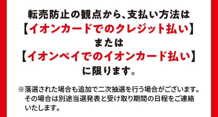 今回の抽選販売は、転売防止の観点から当選商品購入時の支払方法が以下に限定されます。