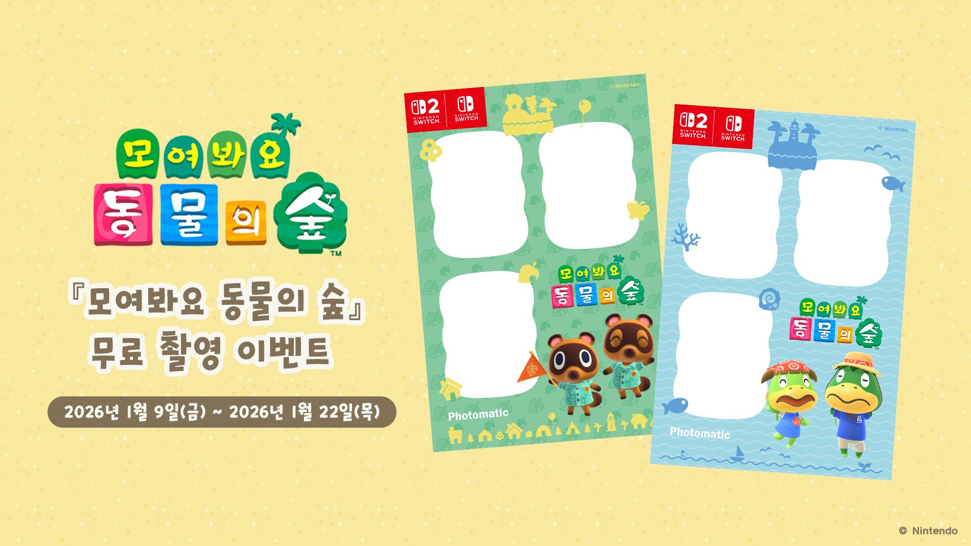 『あつまれ どうぶつの森』の撮影イベントが、2026年1月9日から韓国で開催決定したことを任天堂韓国が発表しました。
