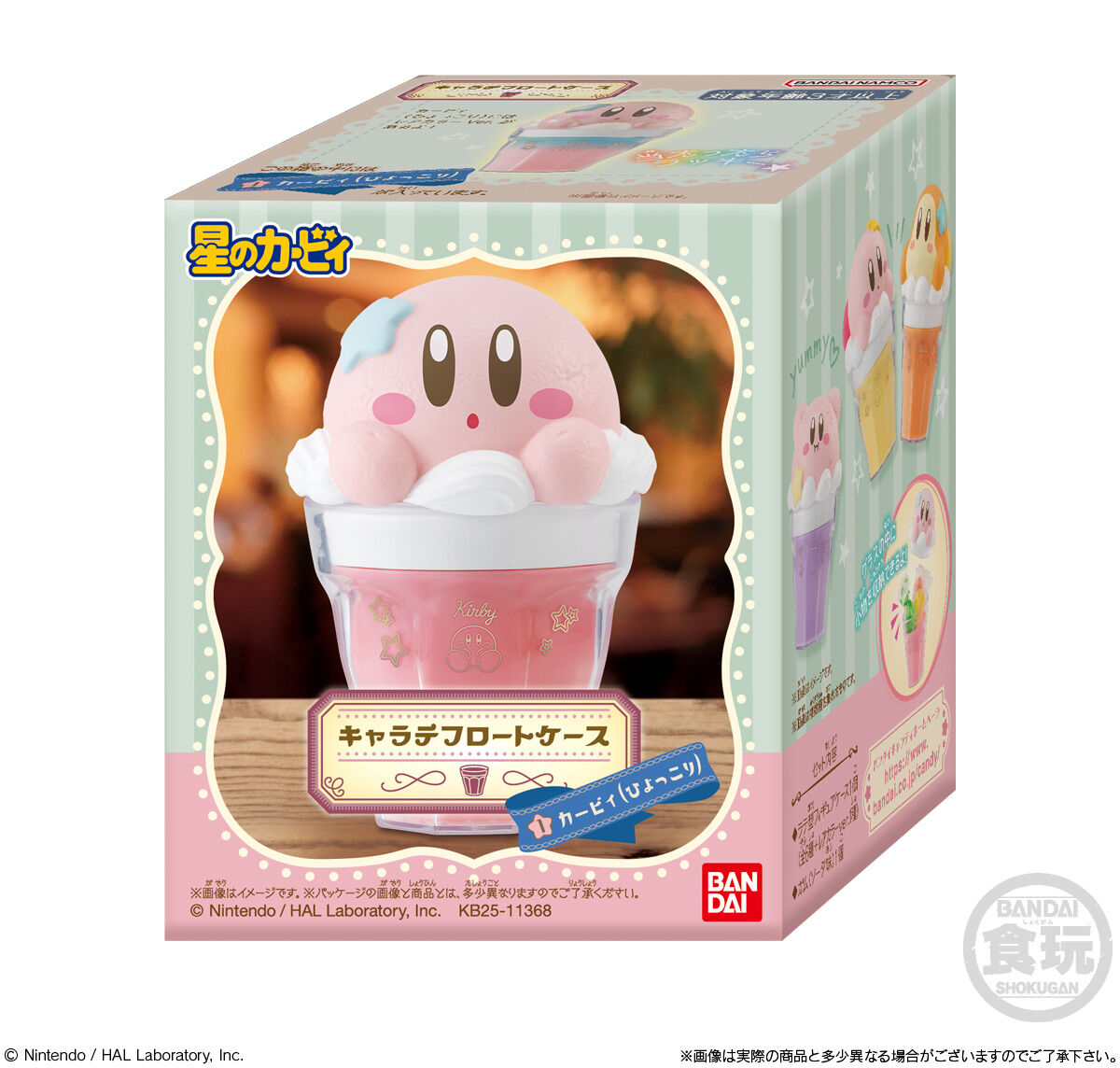 カービィたちがキュートにアイストッピングされたドリンク型のフィギュアになっており、キャラクター型のアイスを外すと中に小物を入れて飾ることができるとのこと。
