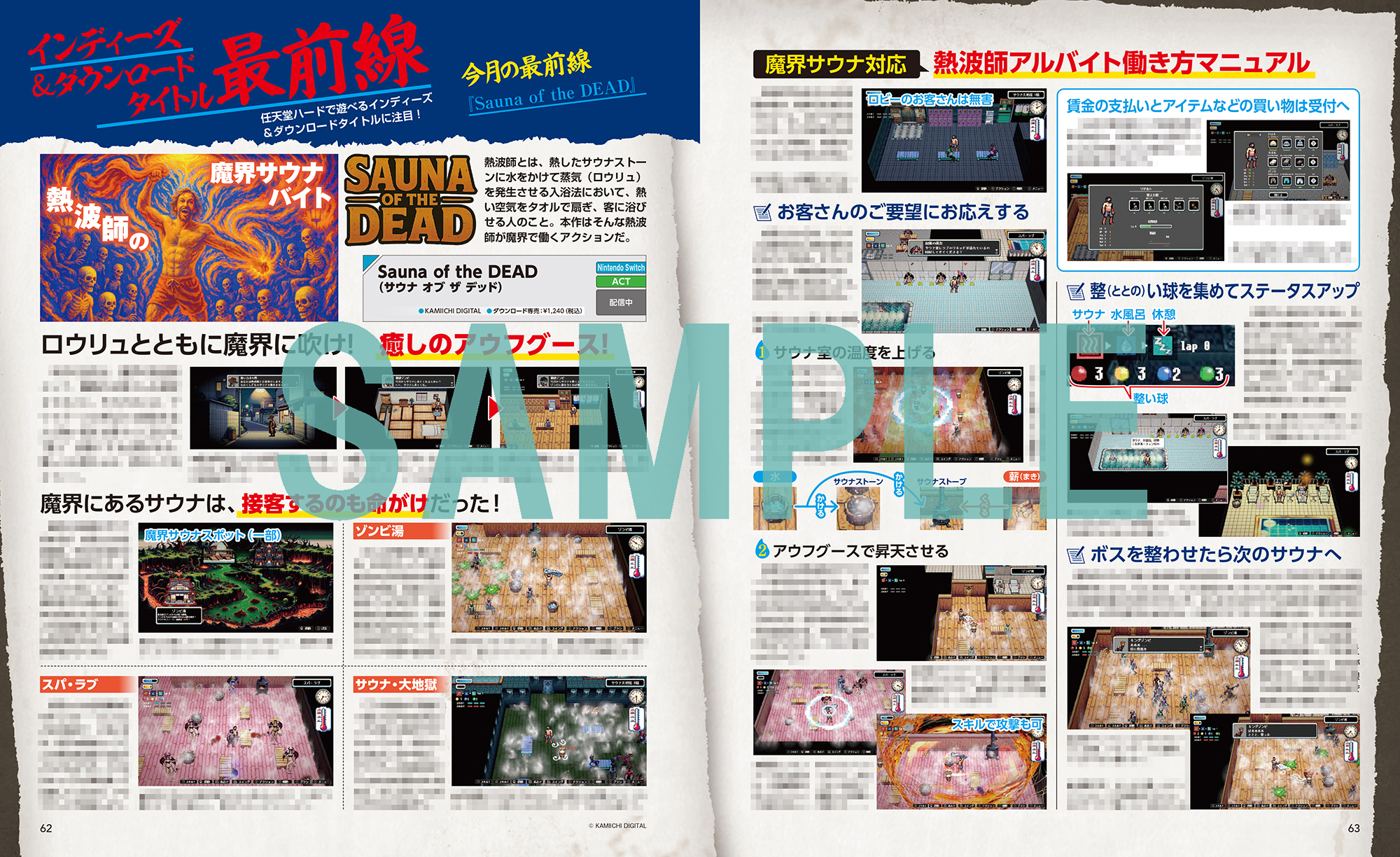 Nintendo Switchで遊べるインディーゲームを紹介する大好評連載企画「インディーズ&ダウンロードタイトル最前線」では、『Sauna of the DEAD(サウナ オブ ザ デッド)』(KAMIICHI DIGITAL)をピックアップ。魔界にあるサウナを舞台に、プレイヤーは魔界の熱波師として、魔物のお客さんを満足させることが目的という本作。その遊び方と、開発者の個人ゲーム制作者「Finger tip」氏のインタビューを掲載しています。
