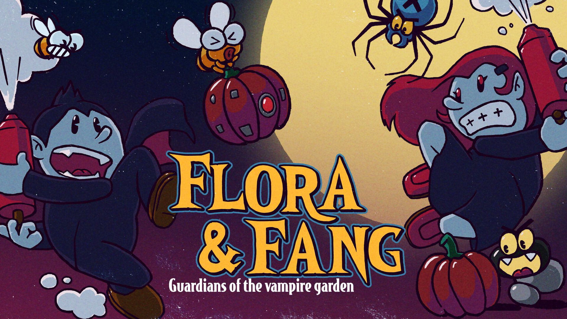 フローラ&ファング:ヴァンパイアガーデンの守護者たちは、シングルプレイヤーまたはローカル協力プレイでプレイできるアドベンチャーゲームです。愛すべきヴァンパイアの姉弟、フローラとファングのどちらかとなり、悪名高き父ドラキュラの大切なカボチャガーデンを守るため、冒険の旅に出ます。