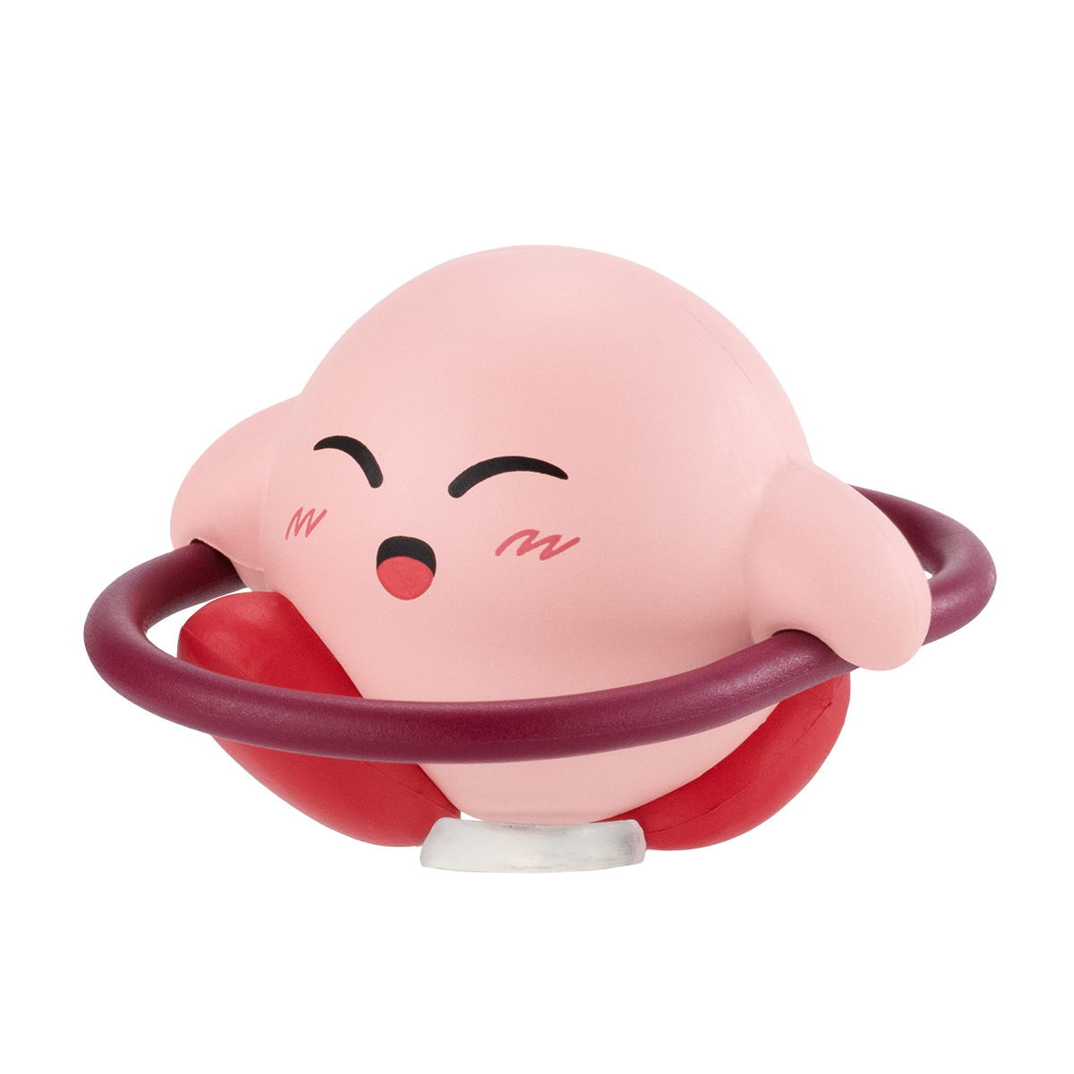 1種で飾ることができるのはもちろん、たくさん集めるとフィギュアを連結させて楽しむことができます。ラインアップは、オリジナルデザインの帽子を身につけた「カービィ(えきいんさん)」をはじめ、「ワドルディ」「ワドルドゥ」「カービィ」の全4種です。