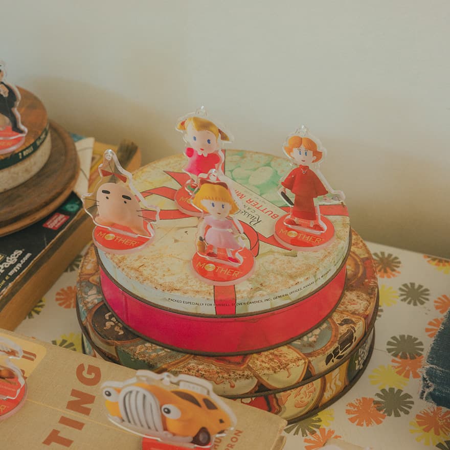 イベント「MOTHERのかたち。」の開催にあわせてつくられたキーチェーンつきのアクリルスタンドです。イベント会場では単品(ブラインド)でお求めいただけます。オンラインの「MOTHERのおみせ」では30種+シークレットが入っているコンプリートボックスで販売します。