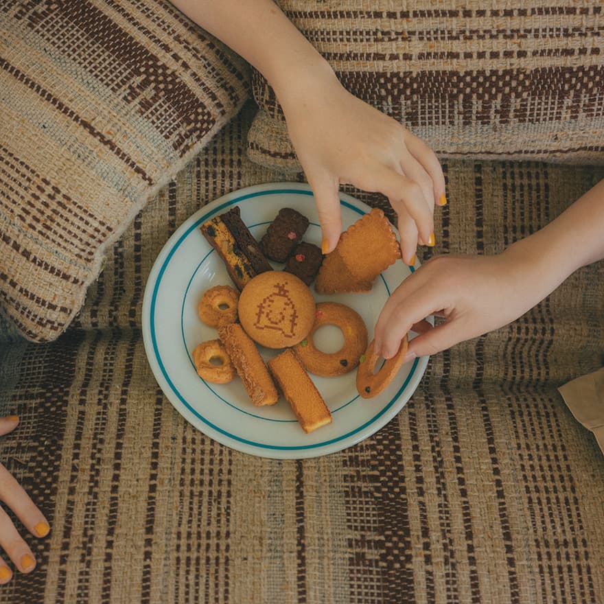 泉屋と「ほぼ日『MOTHER』プロジェクト」とのコラボレーションで、どせいさんのオリジナルクッキーが入った、サターンバレーのクッキーボックスができました。エンボス加工をほどこした缶のフタは独特の立体感があり、どせいさんたちは、ぷっくりとして、さらにかわいい存在に。温泉や池は一段低くなり、おうちや岩は少し盛り上がっており、なめらかな凹凸の手触りを感じていただけます。