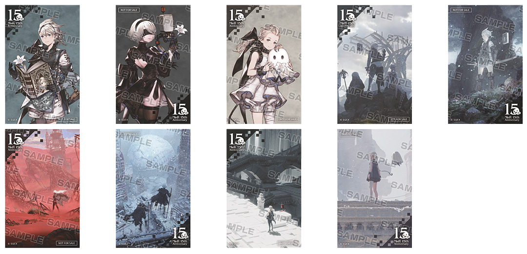 期間中『NieR』シリーズ関連のキャラクターグッズ・対象の音楽商品を購入・予約内金2,200円(税込)毎に、イラストレーションカード(全9種)が1枚プレゼントされます。