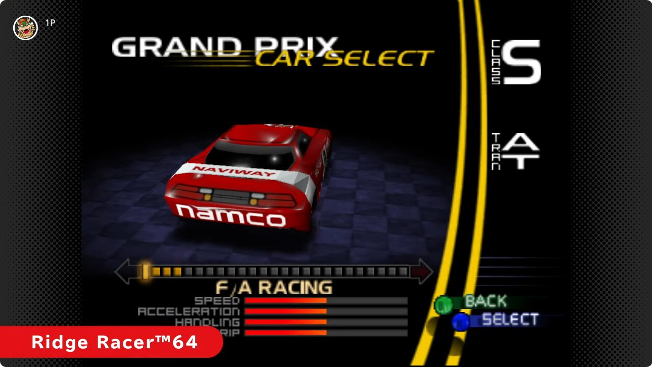 ■「NINTENDO 64 Nintendo Switch Online」に日本未発売タイトル『Ridge Racer™64』を追加。