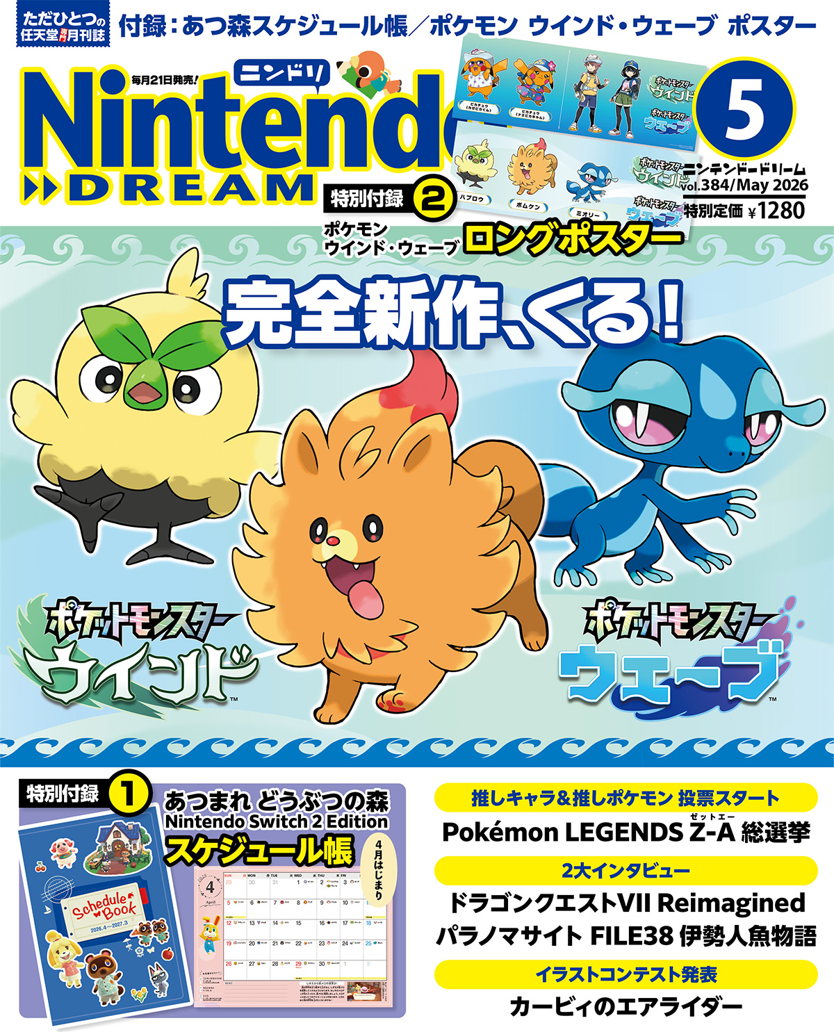 今回のNintendo Dreamでは、「Pokémon Presents 2026.2.27」で発表されたばかりのシリーズ完全新作タイトル『ポケットモンスター ウインド・ウェーブ』が表紙で登場!
