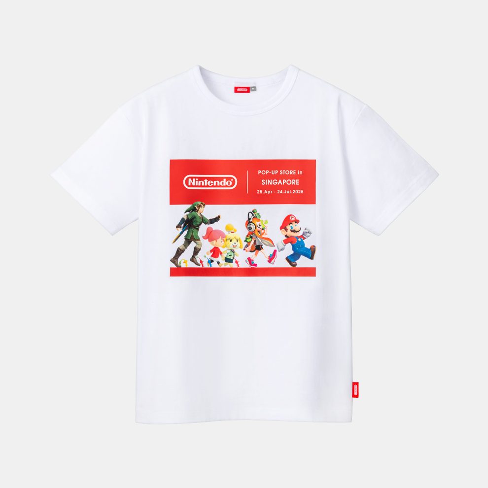会場では、マリオやゼルダ、スプラトゥーン、どうぶつの森、ピクミンなどをテーマにしたさまざまな公式グッズ(Nintendo TOKYO販売商品)を購入することができ、さらに限定グッズとして「POP-UP STORE in SINGAPORE」のロゴがプリントされた限定Tシャツが販売されるとのこと。