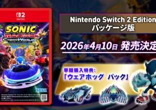 SEGAが、『ソニックレーシング クロスワールド Nintendo Switch 2 Edition』のパッケージ版を2026年4月10日(金)に発売することを発表しました。現在Switch 2版はダウンロード向けとして配信中ですが、新たにパッケージとしても登場するとのこと。■N...