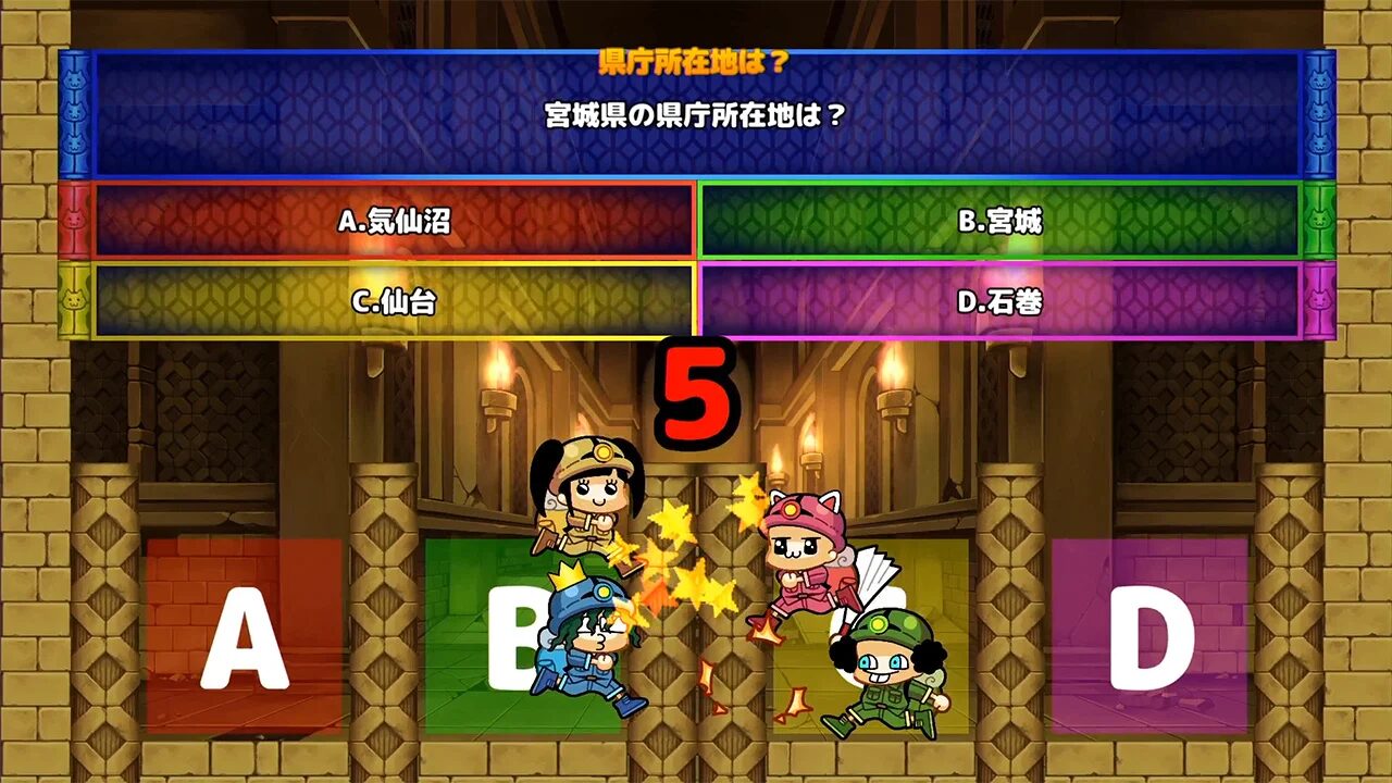 出題に答えなければ先に進めない質問ステージや知識を競うクイズ系ステージなど、