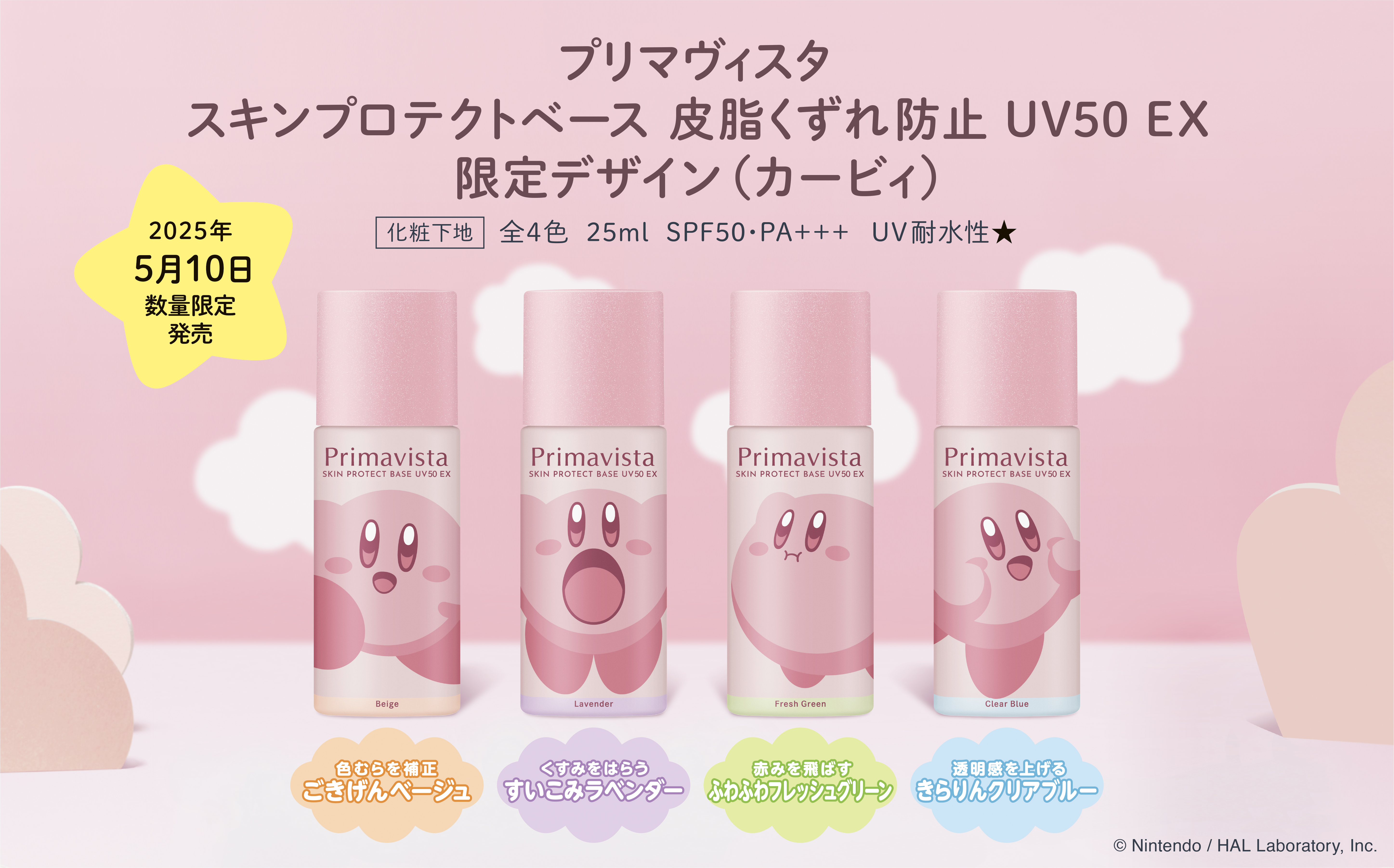 花王株式会社(以下、花王)のベースメイクブランドである『プリマヴィスタ』は、改良新発売する「プリマヴィスタ スキンプロテクトベース 皮脂くずれ防止 UV50 EX」から「星のカービィ」とコラボレーションしたアイテム限定デザイン(カービィ)全4色を、2025年5月10日(土)より全国のドラッグストア・大型スーパー・ECサイトのプリマヴィスタ取り扱い店舗にて数量限定*で販売いたします。*取り扱い店舗には限りがございます。
