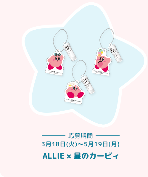 ※星のカービィとコラボレーションしたALLIEは3月22日(土)より発売予定です。詳しくはALLIEのリリース情報をご確認ください。