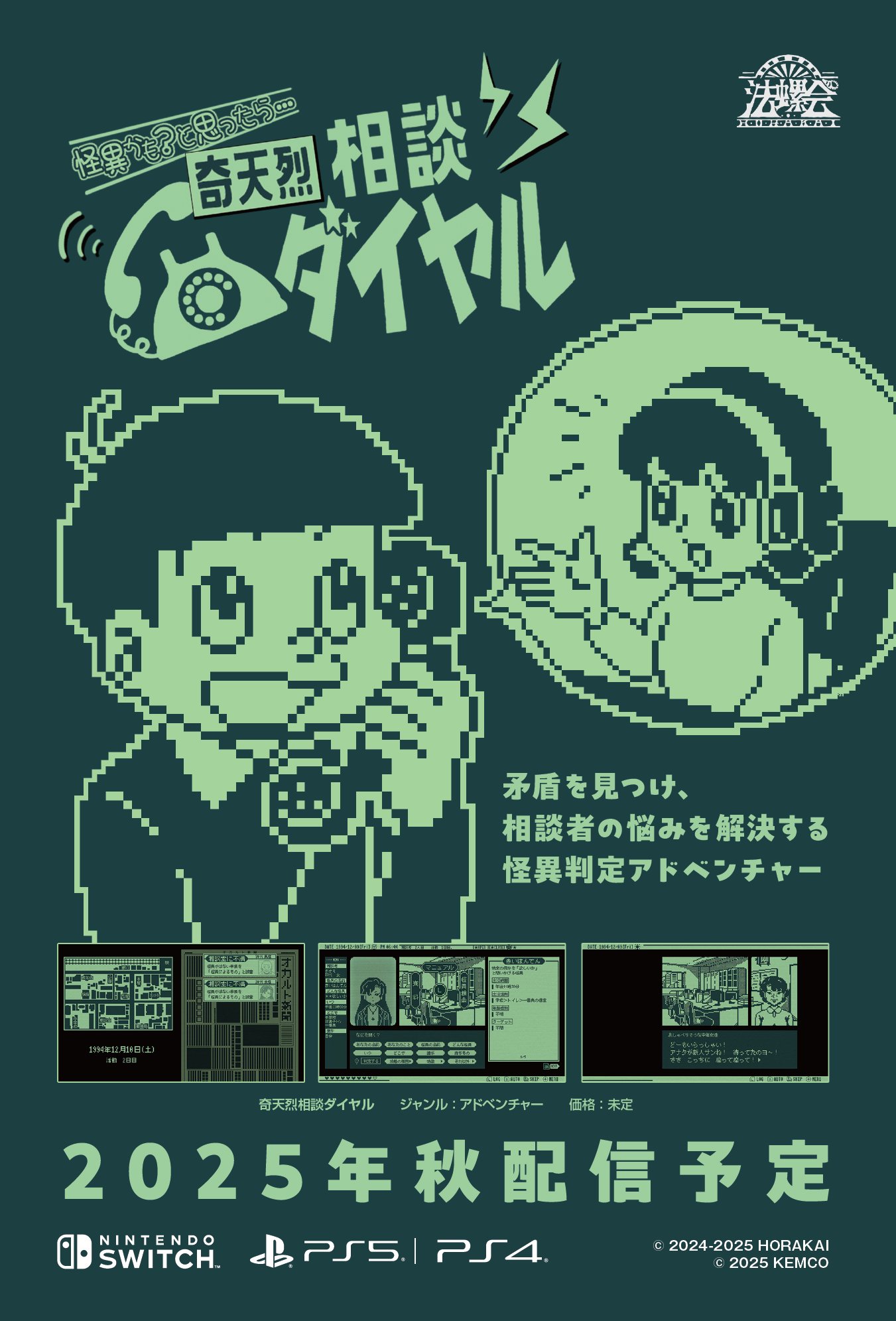 パブリッシャーのケムコが、Nintendo Switch&PS4&PS5版『奇天烈相談ダイヤル』を2025年秋に配信することを発表しました。