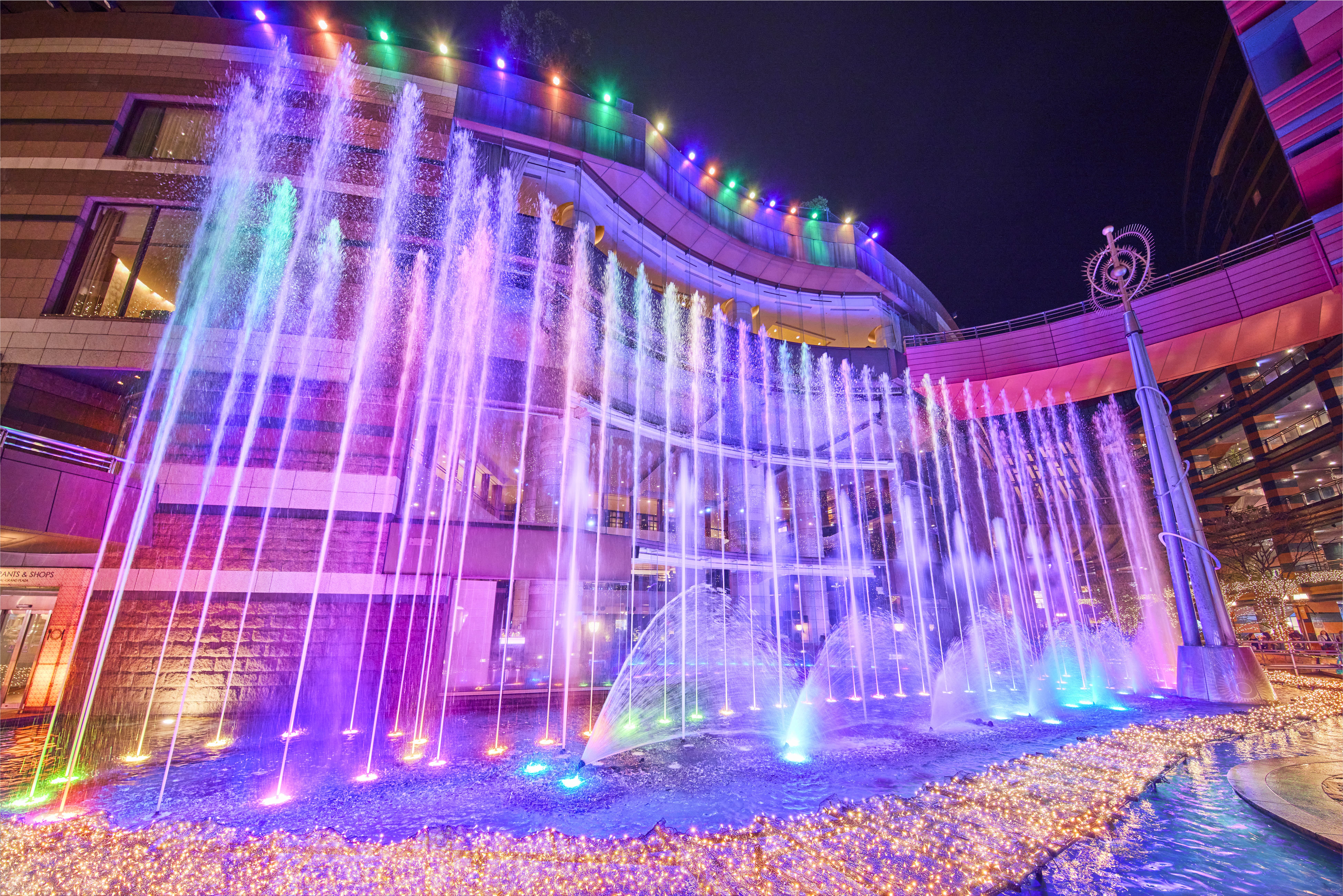 さらに今回は、噴水背面のガラス面に、キャラクターたちのライブ映像を投影する特別演出となるのでお楽しみに♪