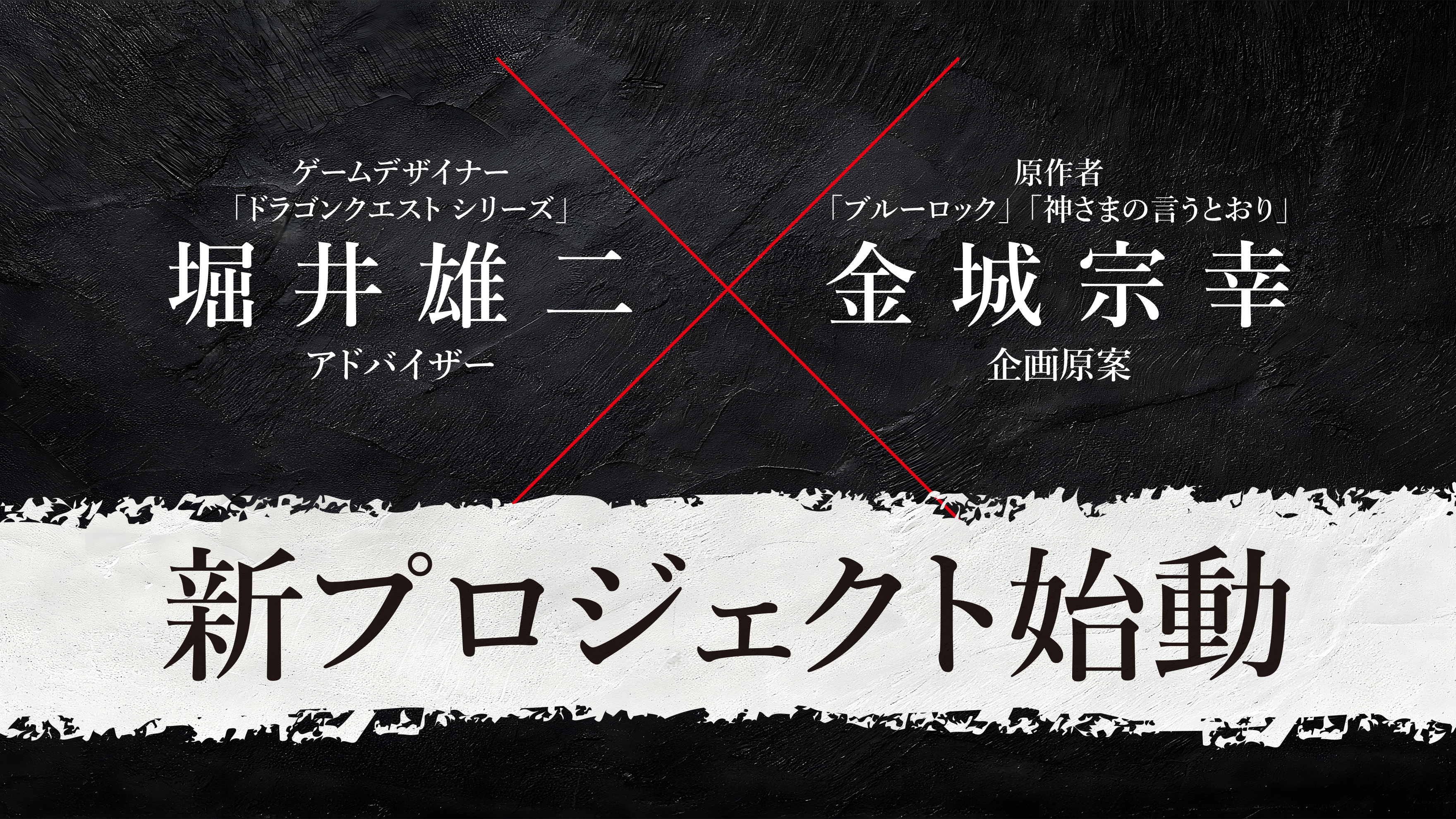 本プロジェクトでは、『ドラゴンクエスト』の生みの親である堀井雄二氏と、『ブルーロック』『神さまの言うとおり』などの原作者として知られる金城宗幸氏が初のタッグ。